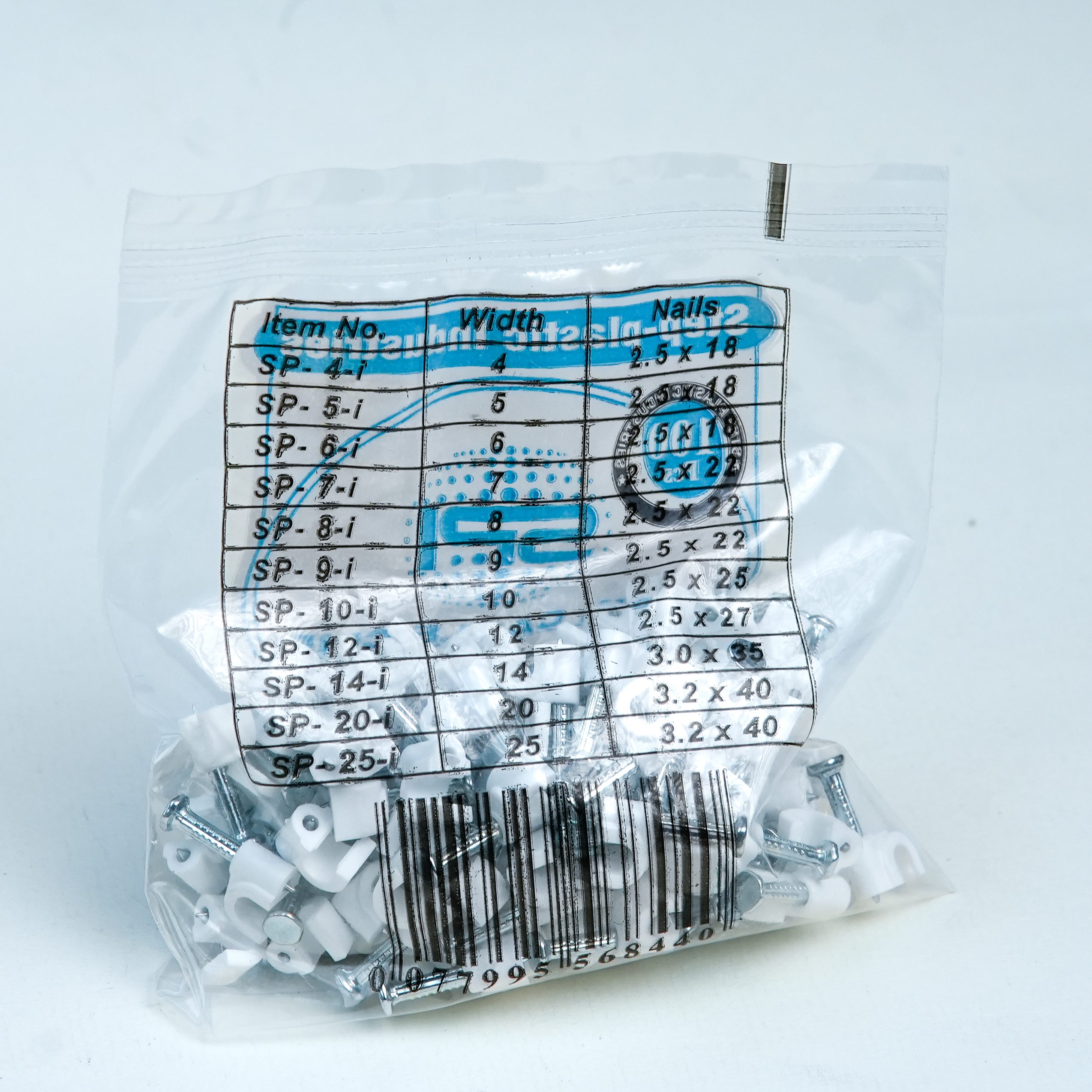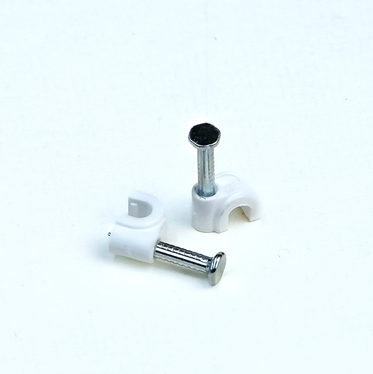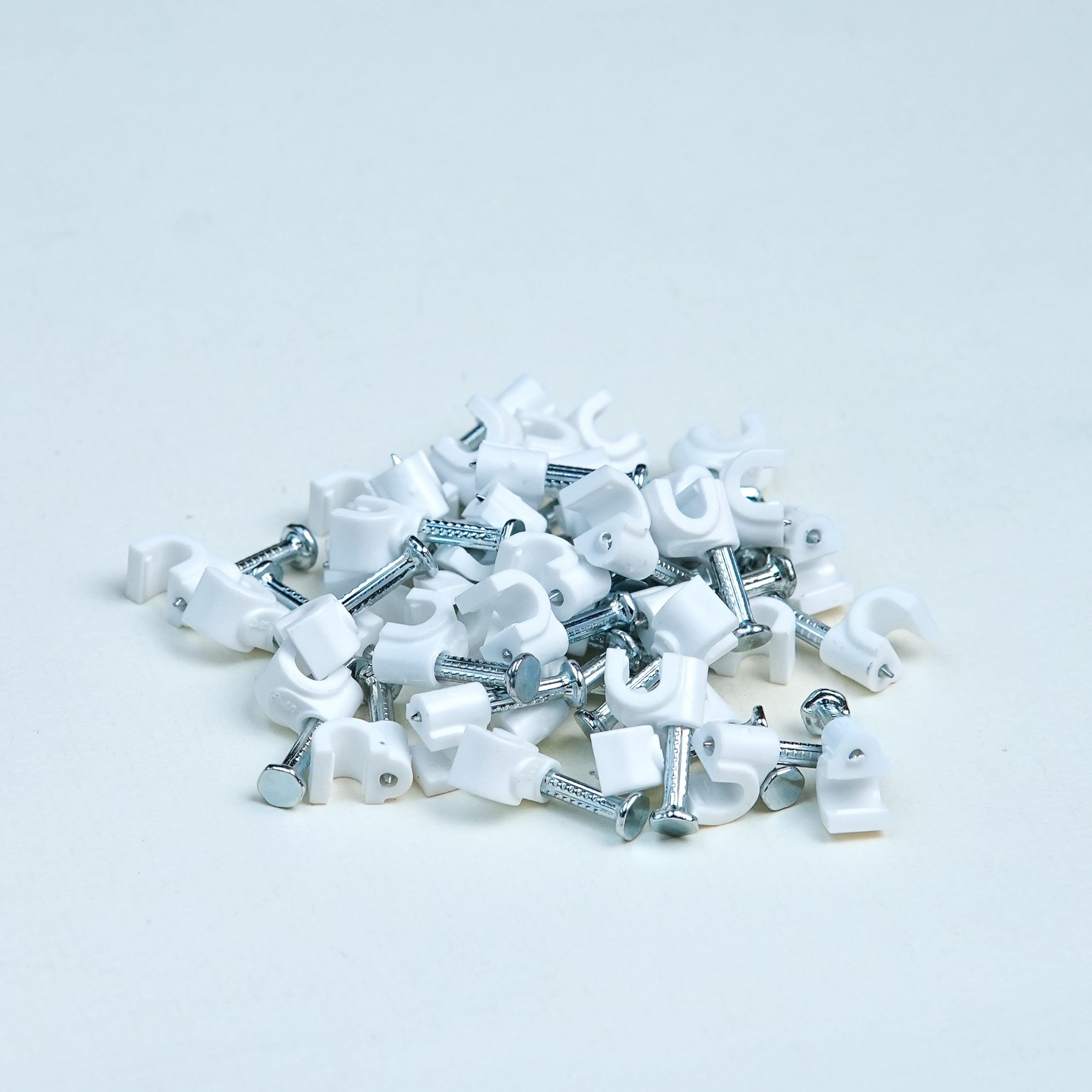 High-quality 4MM PVC cable clip designed for secure, neat, and long-lasting fixing of Telephone wire, bell wire, very thin single-core wire electrical wires on walls and ceilings, available with multiple nail size options.