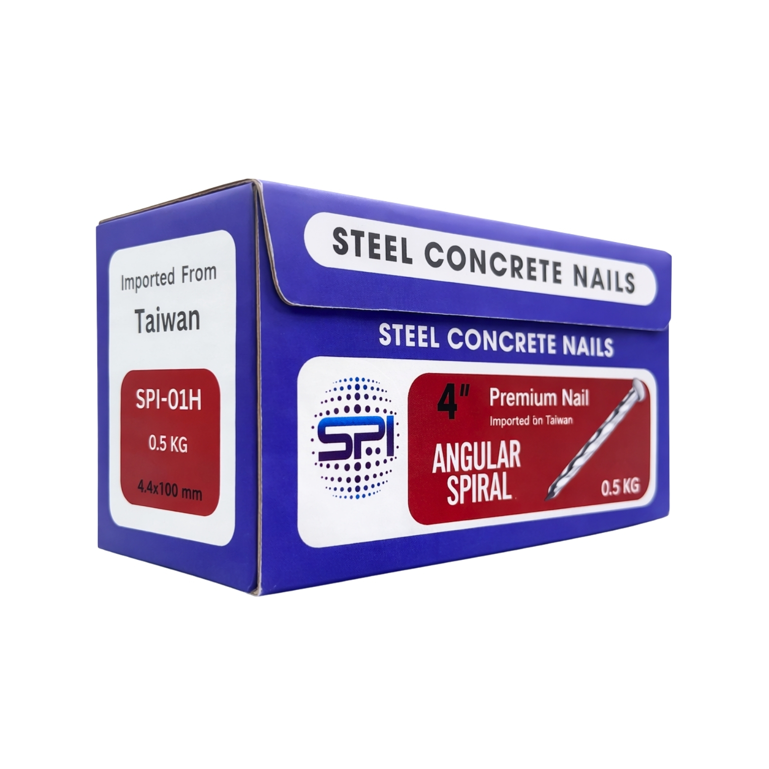 High-strength 4″ steel concrete nails ideal for heavy construction and industrial applications.